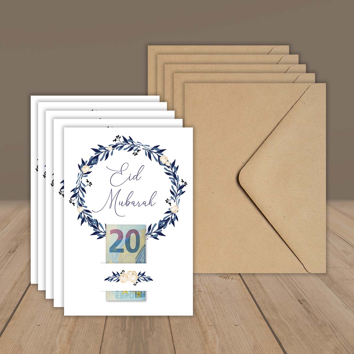 5er Eid Karte für Geldgeschenke mit Kuvert „Blau“